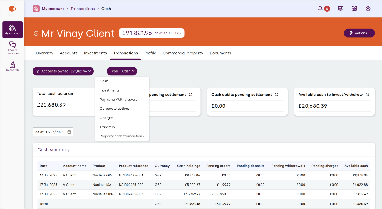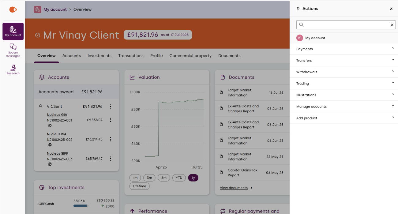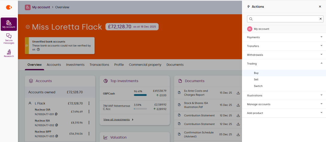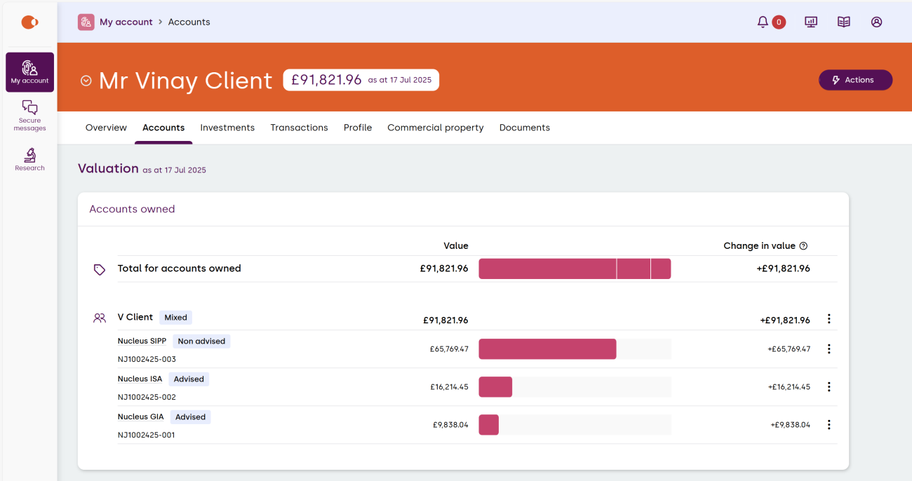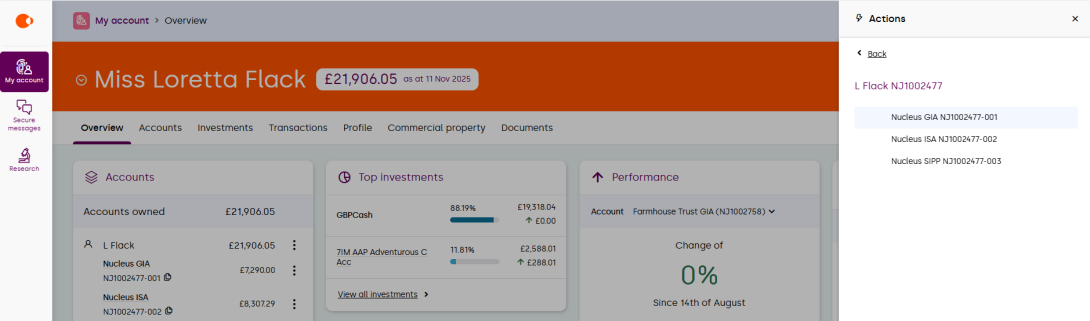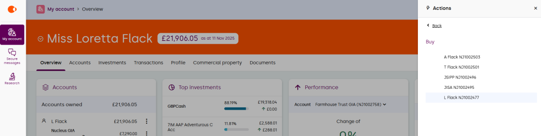 Here you’ll be able to see the valuation of the accounts that you own, as well as any linked accounts. Selecting the product will give you further account details.