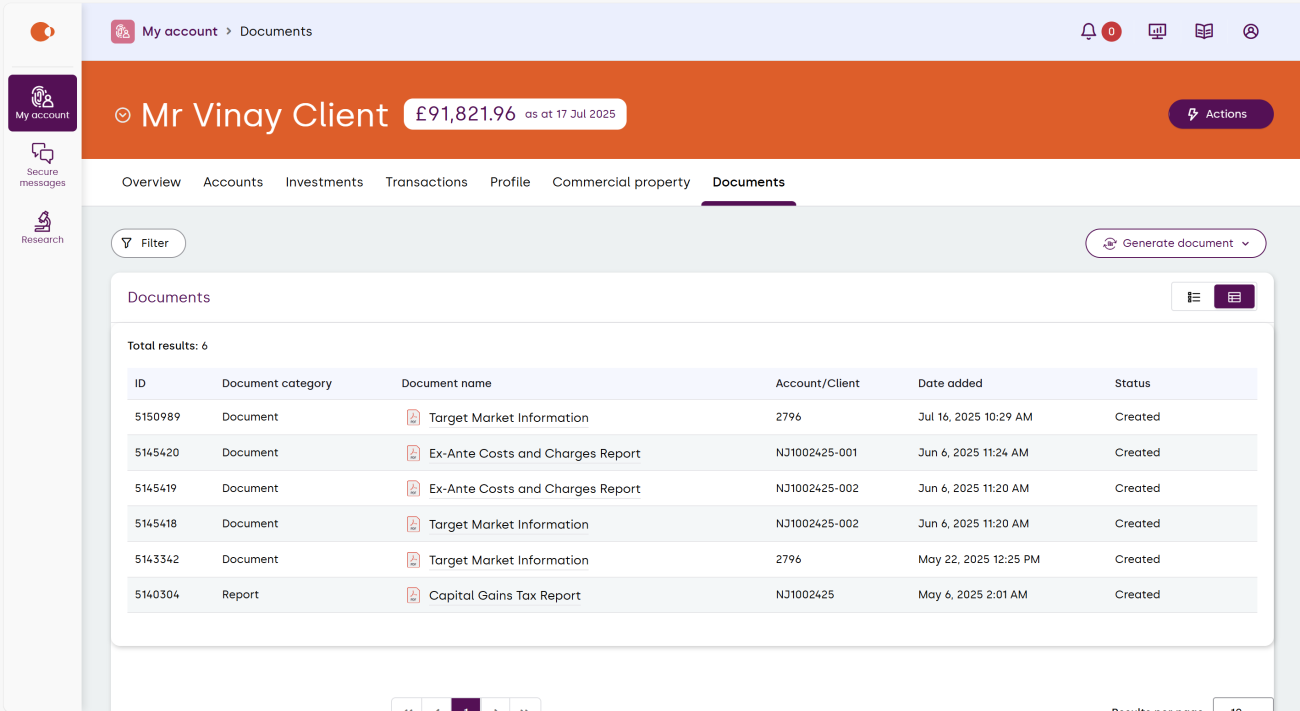 When you login you’ll be directed to your account overview with fully customisable widgets. From here you’ll be able to view everything about your account and take actions, such as make payments and view documents.