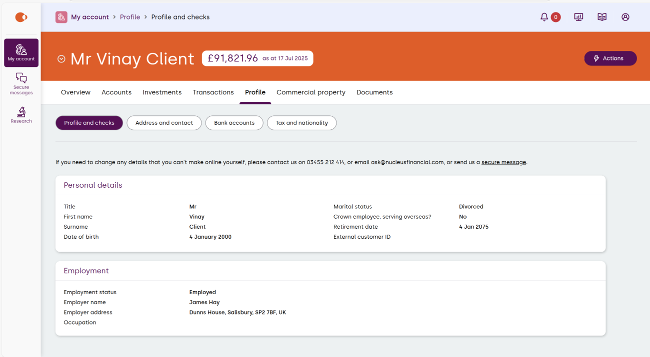 Here you can view and update a variety of your information, such as personal details, tax status and bank accounts.
