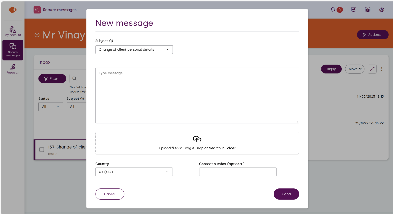 - select ‘New Message’ to begin a new message, enter the information requested, then select ‘Send’.