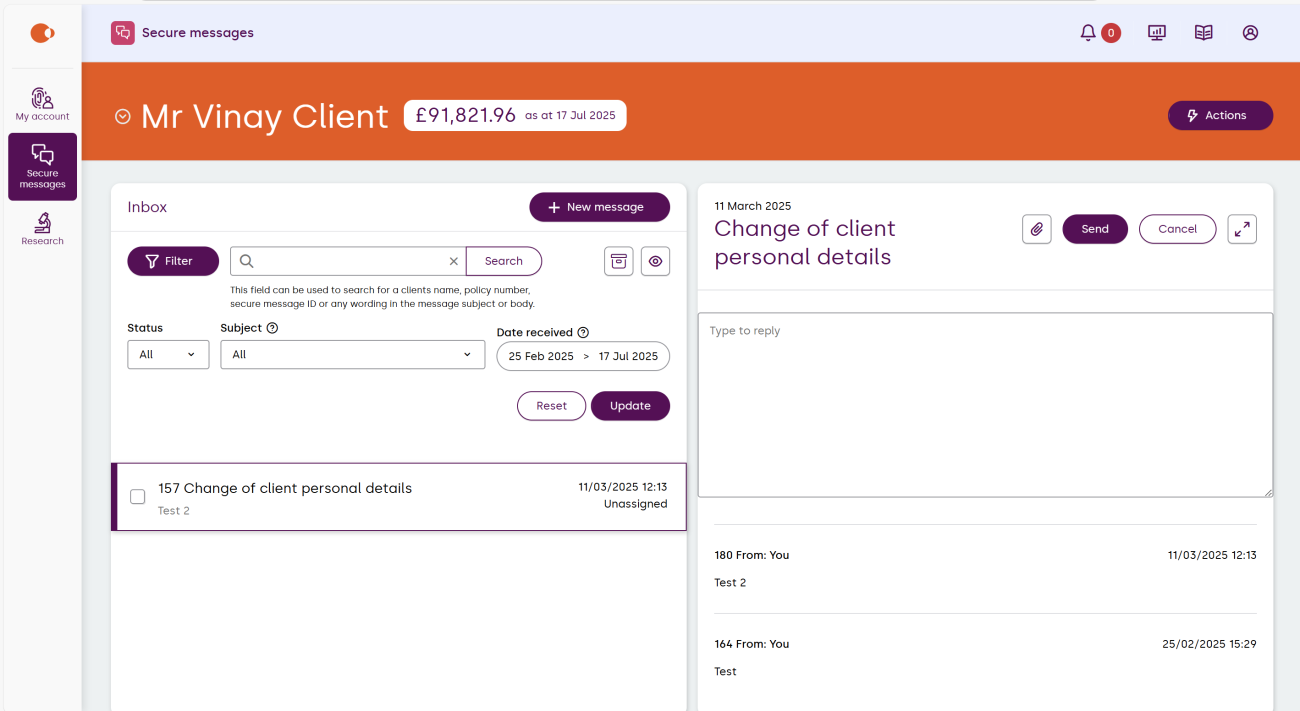 Selecting the secure messages app will take you to your inbox. You can: