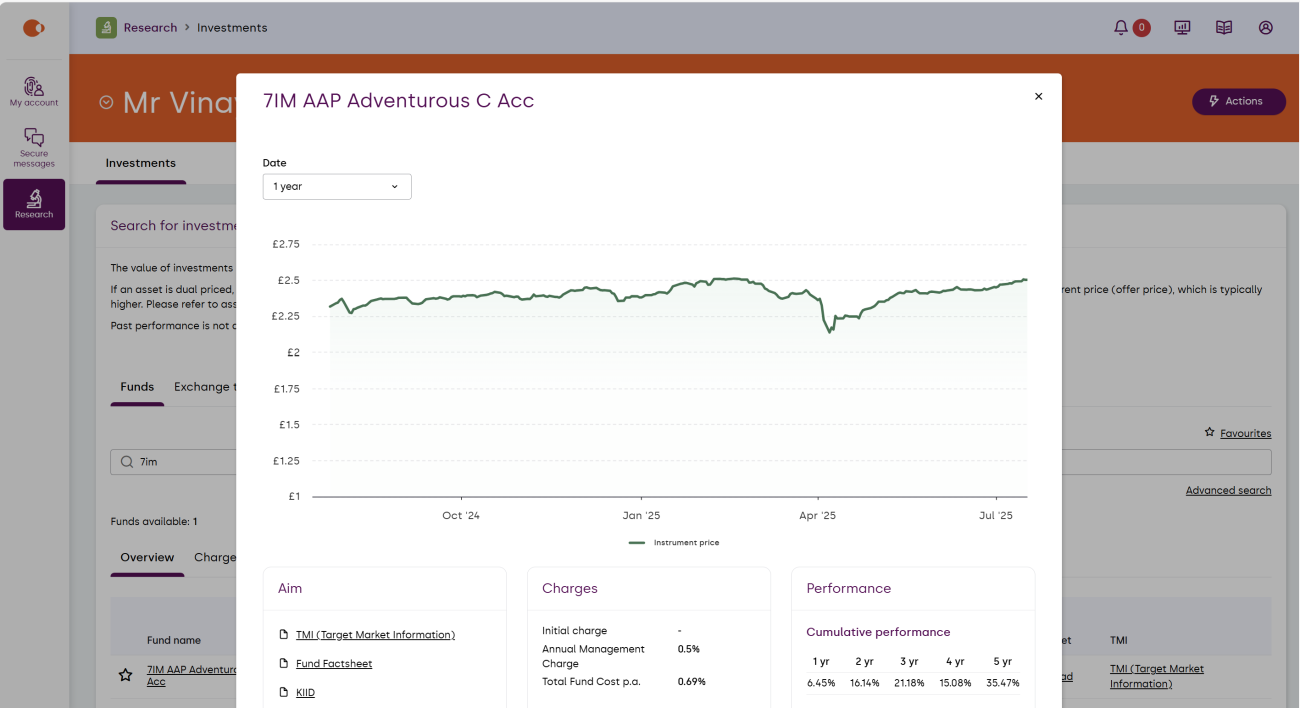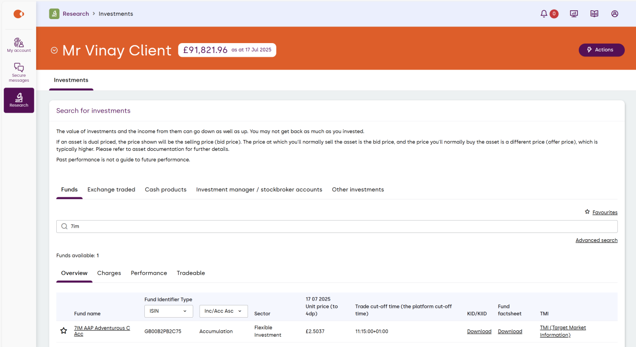 The research application enables you to search for investment information for funds, Exchange Traded Instruments (ETIs), cash products, Investment manager / stockbroker accounts and other investments.